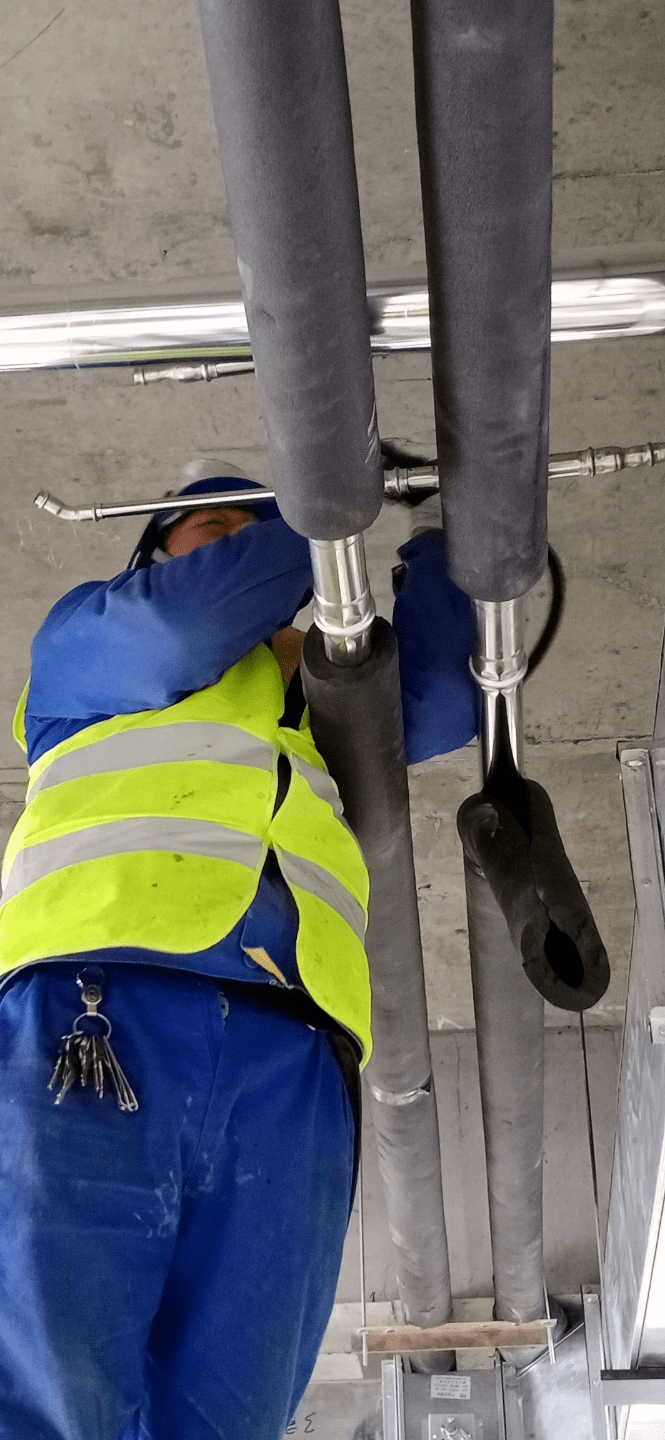 本次項目主體為該院在建病房樓給排水工程。該病房樓共計12層,建筑面積21600平米。項目采用久潤利華雙卡壓式不銹鋼水管,應(yīng)用產(chǎn)品型號為DN15-DN65。該工程主要由久潤利華—臨淄代理王俊永參與,全程包括材料供應(yīng),施工安裝及總公司提供的技術(shù)指導(dǎo)。工程主要涉及醫(yī)療類建筑物供水管道系統(tǒng)的冷熱水供應(yīng),直飲水等板塊。不銹鋼水管安全、無毒、無腐蝕、無滲出物、無異味、無渾濁,不會對水質(zhì)造成二次污染,能夠保持水質(zhì)純凈衛(wèi)生,適用于各大醫(yī)療類建筑。 點評:大型醫(yī)療綜合體涉及醫(yī)用軟水、直飲水、生活用水等多種品質(zhì)要求,用水量大,品質(zhì)高,要求管道可靠性高,易維護,宜選用不銹鋼管道作為供水管材。 以下為部分施工現(xiàn)場圖片