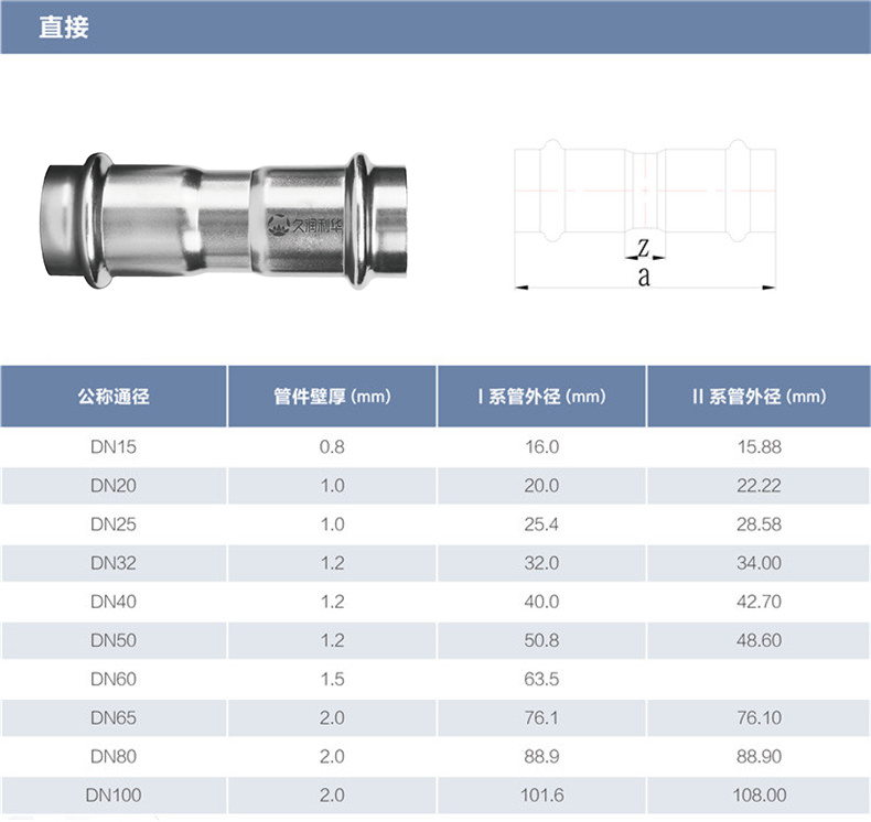 丨質量體系(Quality system): 公司擁有ISO9001質量管理體系認證和壓力管道元件制造許可證,具有健全的質量檢測控制體系,配備設立了工業CT、化學分析、渦流檢測、水壓試驗、氣密性試驗、萬能試驗機等檢驗環節或檢測設備,并建立了以顧客滿意為目標的售后服務體系,保證產品質量,滿足顧客需求 場景應用 (Application): 醫院、地鐵站、學校、會議中心、機場、家庭用水、小區二次供水、終端家裝等 丨關于運輸(Transport): 普通運輸,打捆不包裝運輸;特殊運輸 打捆外包(包、箱、防護集裝箱)運輸。 如有其它特殊要求請咨詢在線客服或致電:13573388823。 丨連接方式及安裝步驟(Connection method): 雙卡壓式、溝槽式、承插焊接式 丨產品圖片(Product Pictures):